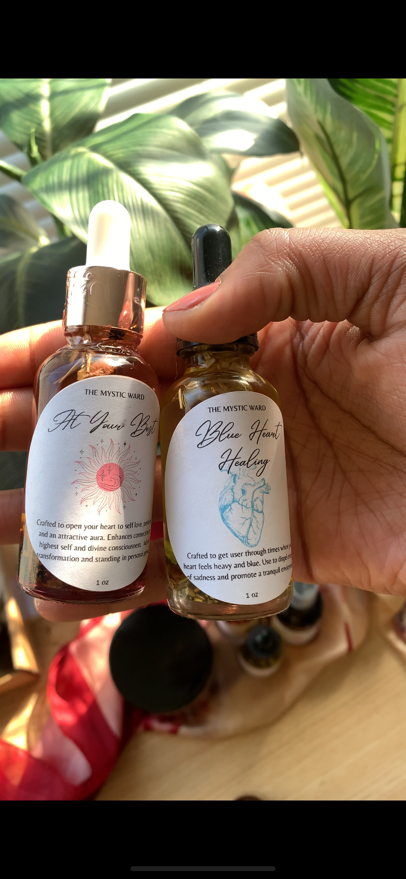 Allow the Blue Heart Healing Oil to rid your mind of anxieties keeping you from seeing the reality of your situation. This brew was crafted to aid in transformations that we often have to go through alone.